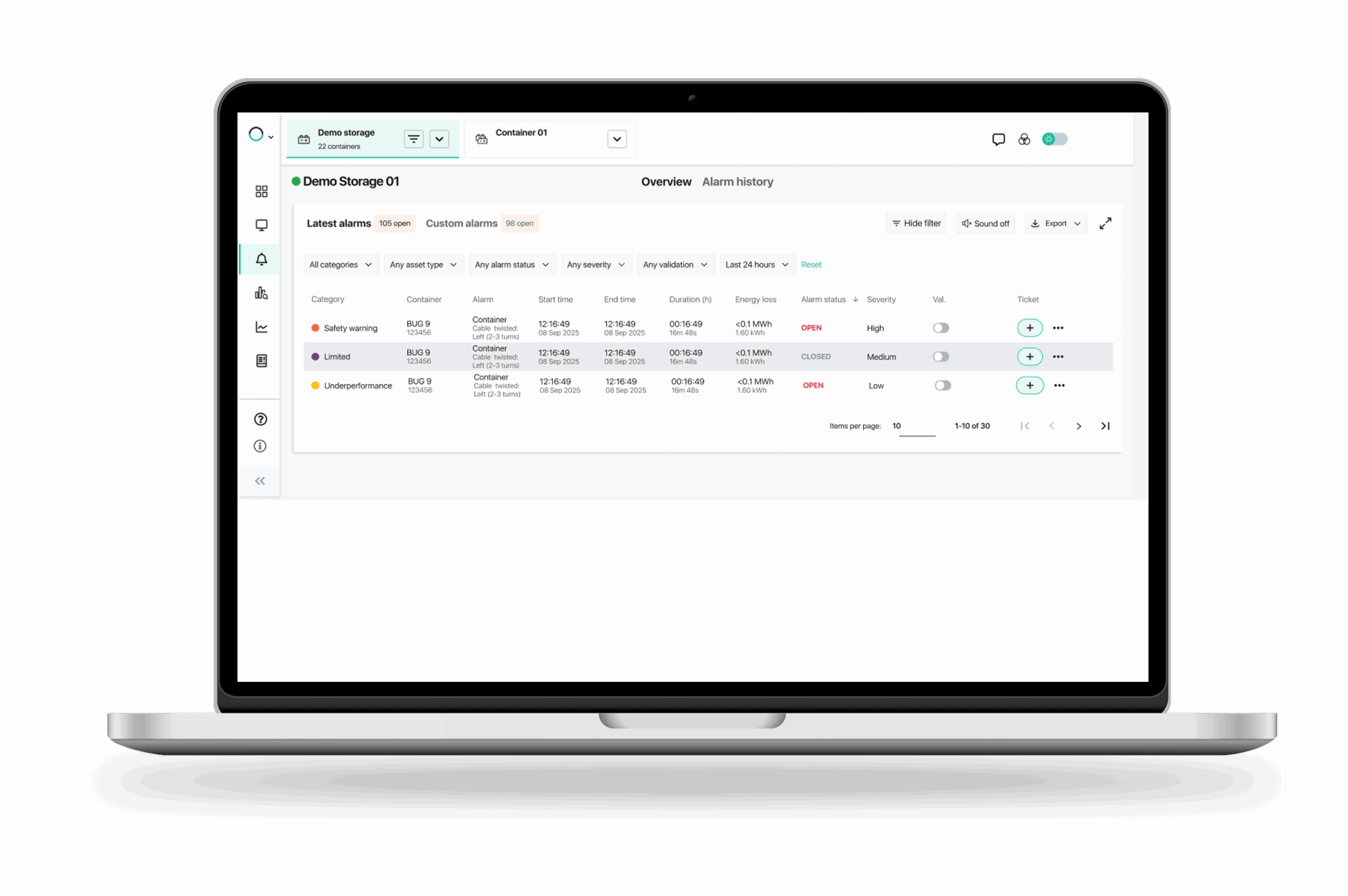 Stay ahead of issues before they escalate. Receive automated alerts on portfolio-wide and device-level anomalies, so you can act fast on performance drops, faults, or safety risks.